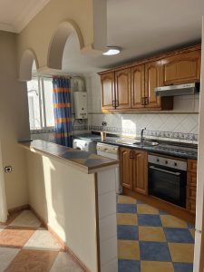Piso de 82m2 con amplio salón y cocina abierta. Tiene 3 habitaciones y un baño. Se queda semi amueblado y tiene aire acondicionado y ascensor.